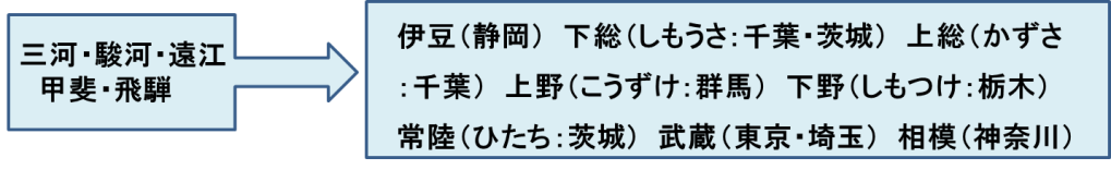 - 五ヶ国統治時代は国別支配でしたが、江戸を中心とする関東の一円的 な支配体制の実現