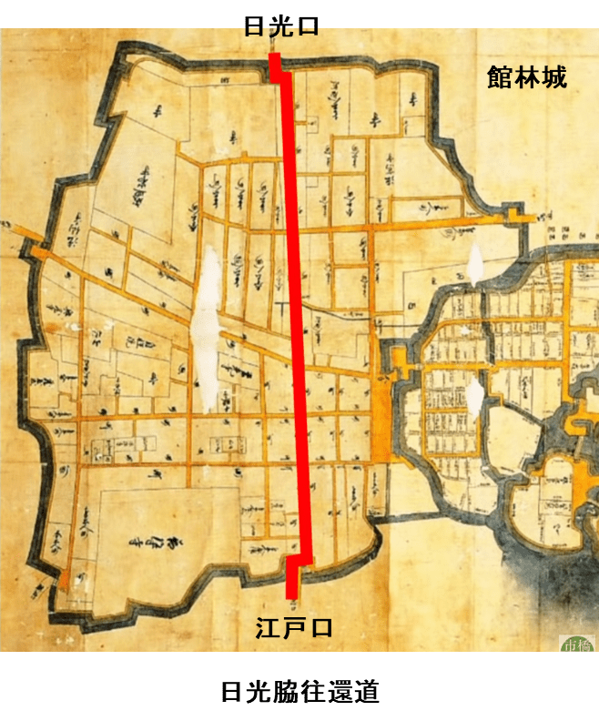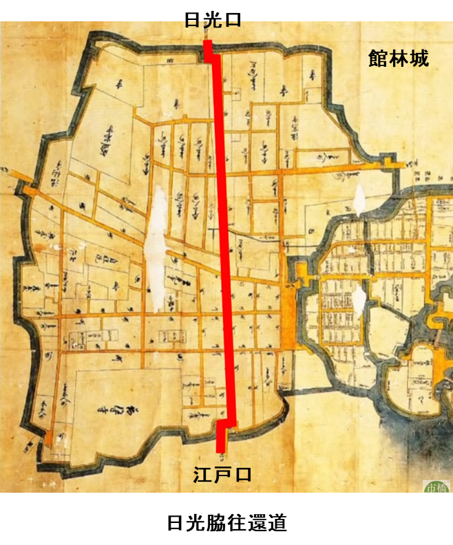 城下町の中を通る日光脇往還道 を敷設しました。日光脇往還道は中仙道の鴻巣宿(埼玉県巣鴨市)から北上し、館林を北に抜けると栃木県佐野で日光例幣使街道に合流する幹線街道でした。この街道により人の往来が盛んになり館林は発展しました。