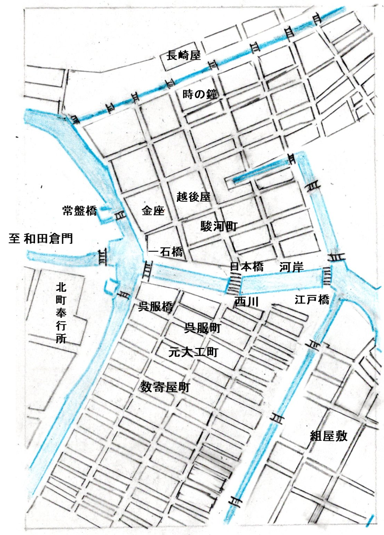 小判の製造所で幕府の中央銀行で現在の日本銀行もこの場所にあります。本両替町には現在の銀行に相当する両替店が建ちならんでいました。