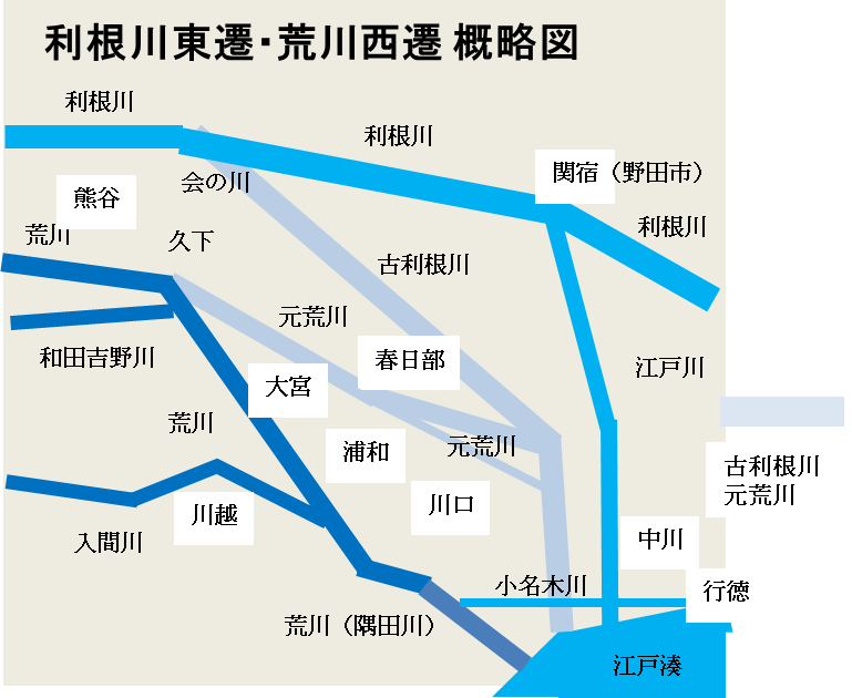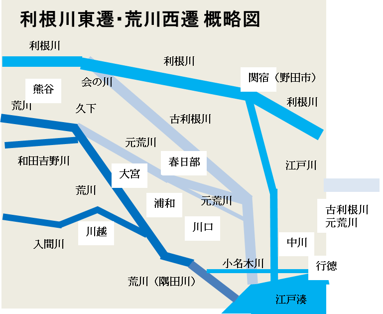 利根川東遷は利根川と荒川を分離し、利根川の流路を江戸から離して固定化する事でした。