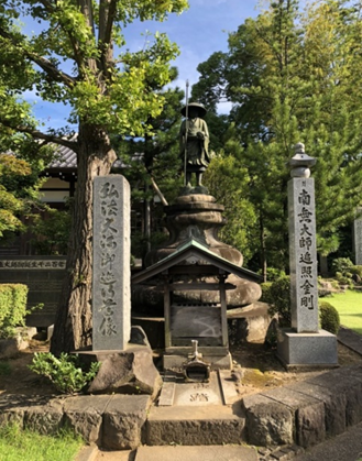 大きい丸い4段石座に立たれる弘法大師尊師を仰ぎ見ます。